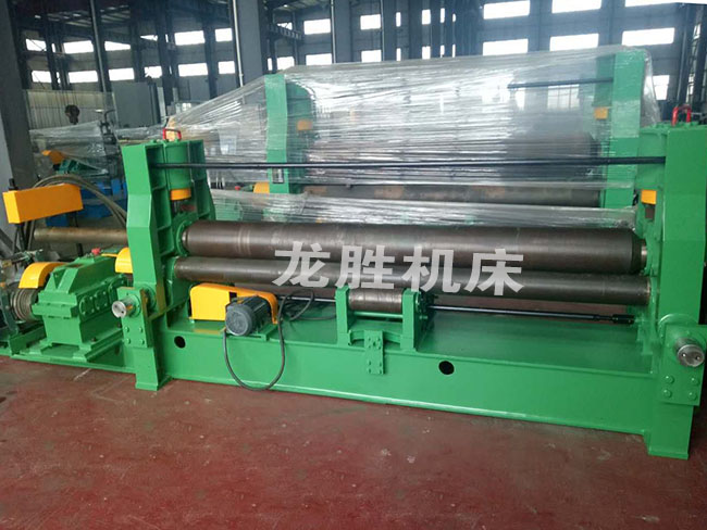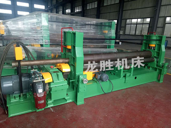 該機屬于液壓型三輥卷板機,用于常溫狀態(tài)下將各種容器用碳鋼、低合金鋼一次上料后不需調(diào)頭即完成板材端部預彎、卷圓和矯圓等工序。