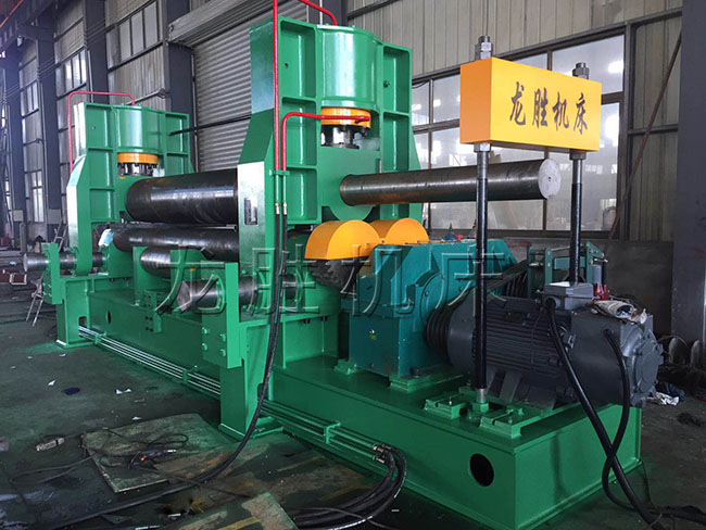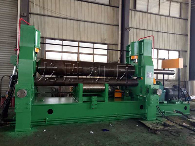 該機(jī)屬于液壓型三輥卷板機(jī),用于常溫狀態(tài)下將各種容器用碳鋼、低合金鋼一次上料后不需調(diào)頭即完成板材端部預(yù)彎、卷圓和矯圓等工序。